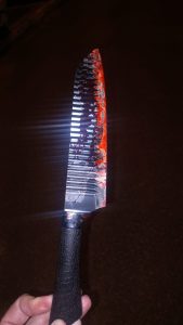 Conforme relato do suspeito, ele não chegou a ferir o outro homem e teria pego o objeto apenas para se defender. Também foi verificado que ninguém foi atingido pela faca. O sangue encontrado na lâmina seria do próprio envolvido, que teria se machucado de forma acidental.