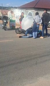 Um acidente envolvendo um automóvel e uma motocicleta foi registrado no final da tarde desta sexta-feira (06), no cruzamento da Avenida Paraguai com a Travessa Moçambique, no bairro Nações.